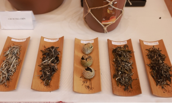 Và những giá trị tinh túy mà chị Nguyễn Thị Thắm chia sẻ, những phẩm trà quý đã được trân trọng giới thiệu trong buổi gặp mặt. Trên những chiếc khay tre mộc mạc, từng búp trà Bạch Trà Thiên, Bạch Trà Mây, Trà lên men, Trà quýt,...hiện lên như những báu vật của thiên nhiên, kết tinh từ độ cao, mây ngàn và bàn tay cần mẫn của đồng bào H’Mông.