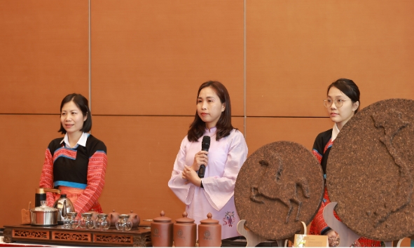 Giữa hội trường rộng lớn, ánh sáng tự nhiên len lỏi qua khung cửa kính lớn, mang đến không gian ấm cúng, thanh lịch. Những vị khách quý trong trang phục truyền thống của các nước ASEAN ngồi quây quần bên nhau, trò chuyện thân tình. Trên bàn, những chum trà Shan Tuyết cổ thụ được trưng bày trang trọng, thể hiện bề dày văn hóa trà Việt. Màu nâu trầm của bánh trà Shanam lên men theo năm tháng càng tôn lên giá trị của loại trà đặc biệt này.
