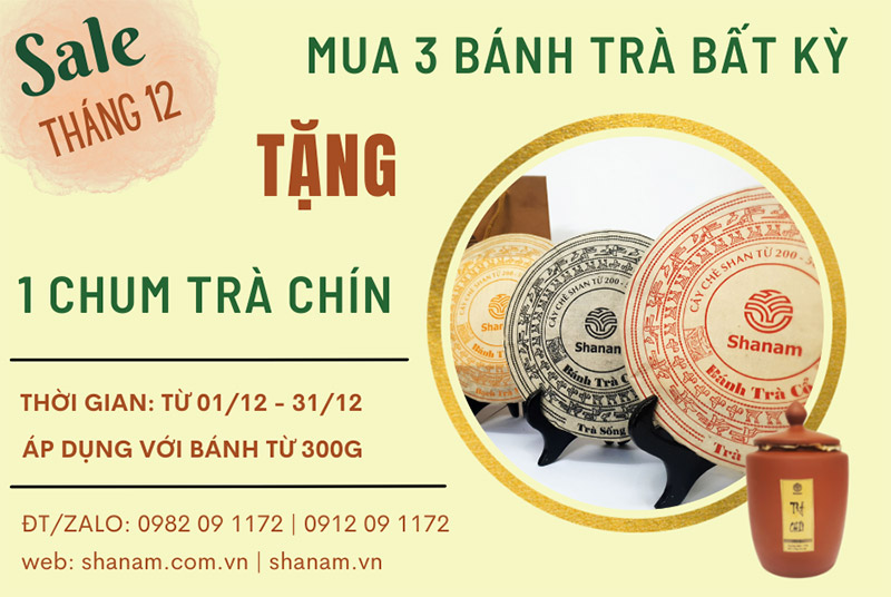 Tháng 12 Shanam luôn có nhiều chương trình bán hàng hấp dẫn để tri ân khách hàng đã đồng hành cùng Shanam trong thời gian qua. Chương trình đầu tiên trong tháng 12 Shanam xin gửi đến khách hàng là "MUA TRÀ ÉP BÁNH TẶNG TRÀ Ủ CHUM"