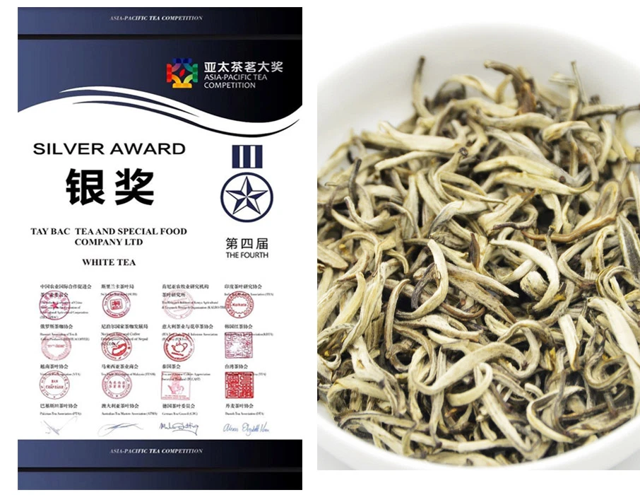 3/ BẠCH TRÀ THIÊN: Đạt giải nhì cuộc thi Trà Châu Á Thái Bình Dương lần thứ 4 được tổ chức tại Trung Quốc. Bạch Trà Thiên đã vượt qua 412 mẫu trà từ 8 quốc gia sản xuất trà lớn nhất thế giới: Trung Quốc, Ấn Độ, Sri Lanka.....để giành giải Bạc.