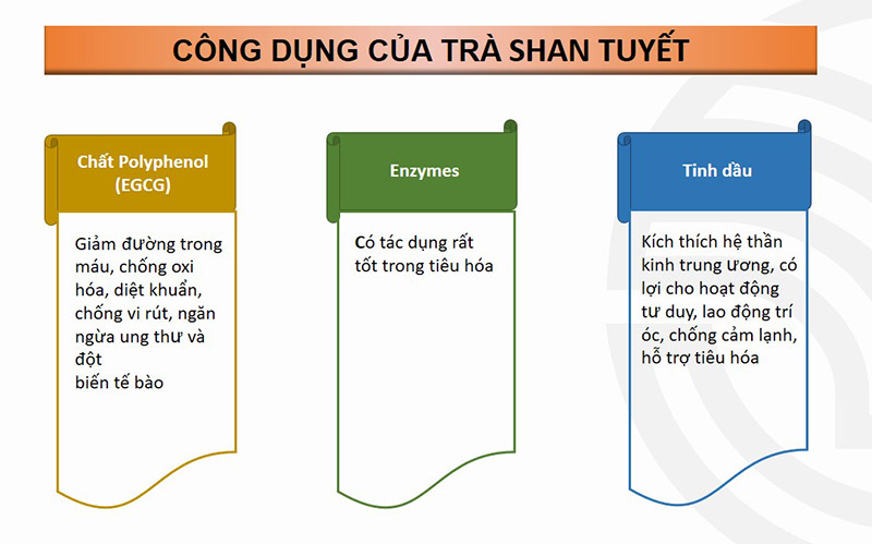 Trà xanh thông thường đã tốt cho sức khỏe nhưng trà Shan Tuyết còn tốt hơn gấp nhiều lần. Không chỉ giúp cho người uống minh mẫn, sảng khoái mà còn hỗ trợ phòng các bệnh như bệnh tiểu đường, bệnh tim mạch, bệnh ung thư.