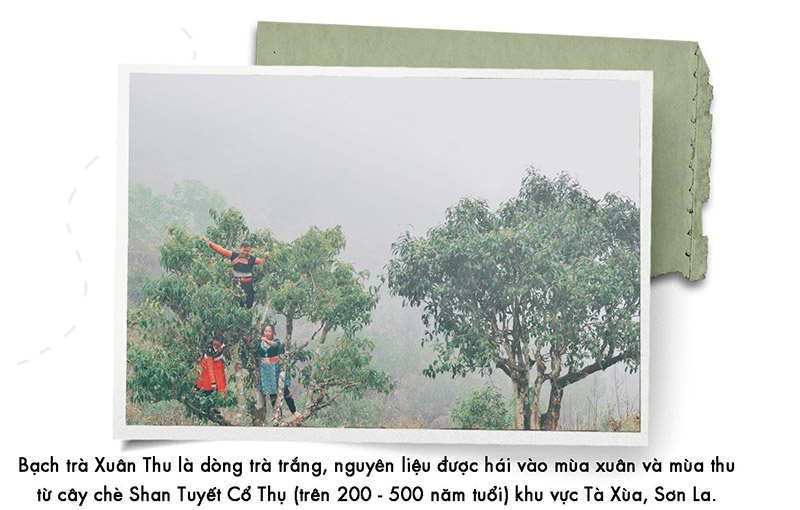 Bạch trà Xuân Thu là dòng trà trắng, nguyên liệu được hái vào mùa xuân và mùa thu từ cây chè Shan Tuyết Cổ Thụ (trên 200 -500 năm tuổi) khu vực Tà Xùa, Sơn La. Bạch trà mang mùi hương đặc trưng của hoa rừng xen lẫn hương cốm và cây cỏ, có vị chát nhẹ, hậu vị ngọt và thanh, như một chút lưu luyến se sẽ của mùa có gió heo may tím loang vỉa hè.