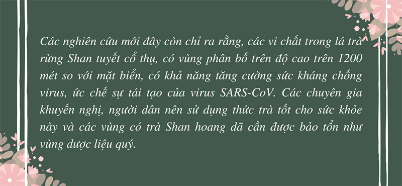 Phạm Vũ Khánh lấy từ chum gốm một gắp trà búp dài, có đốm trắng đặc trưng của shan tuyết cổ thụ, thong thả cho vào chiếc ấm thủy tinh trong vắt. Tay thoăn thoát rót nước, miệng đủng đỉnh bảo: uống từ từ kẻo nghiện nhé, anh không có nhiều đâu, năm nay sản xuất vừa đủ cho vụ Tết thôi.